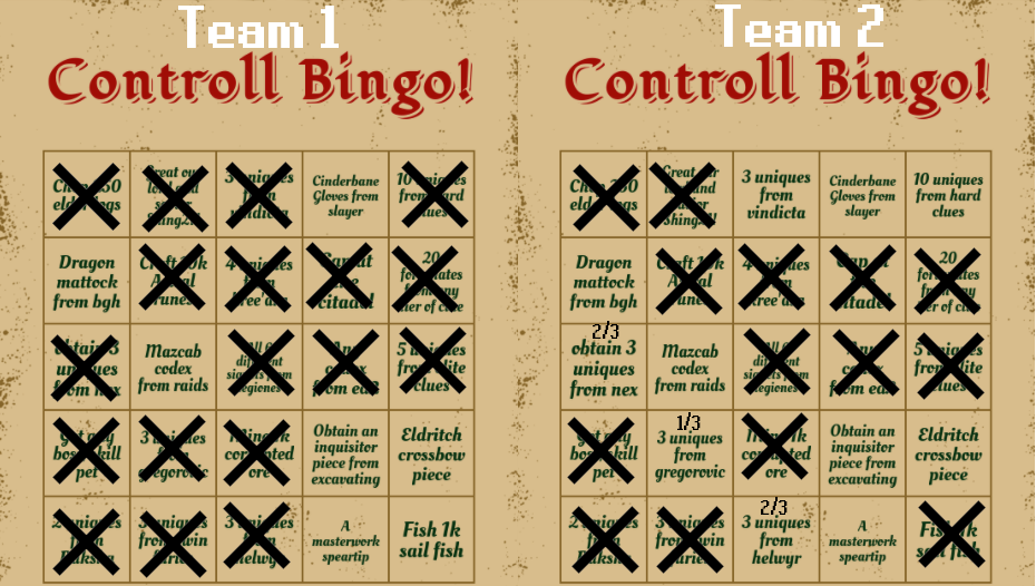 This clan bingo was organised by Snus, who created and orchestrated the event. Thank you Snus! Keep scrolling for the final results.