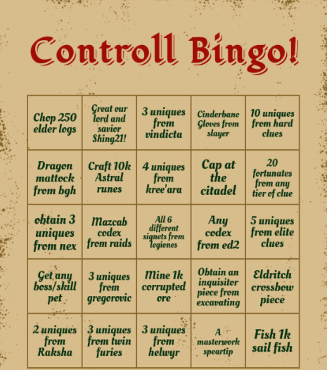 This clan bingo was organised by Snus, who created and orchestrated the event. Thank you Snus! Keep scrolling for the final results.