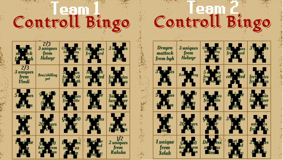This clan bingo was organised by Snus, who created and orchestrated the event. Thank you Snus! Keep scrolling for the final results.